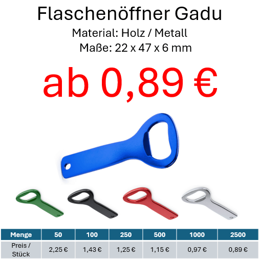 Aluminium Flaschenöffner mit gestanztem Griff.