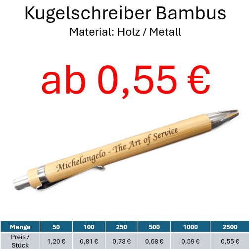 Alle Preise verstehen sich inklusive der gesetzlichen MwSt. und einer einseitigen Gravur. Rückseitige Gravuren bieten wir – sofern technisch umsetzbar – gegen Aufpreis an.