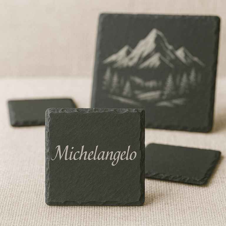 Edle Schieferplatten für Logos, Motive oder persönliche Botschaften.
